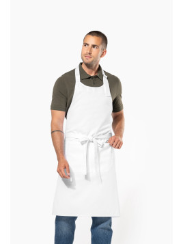 Tablier coton lavage industriel 85°C avec grande poche avant double compartiment professionnel ajustable