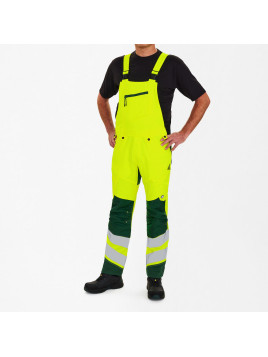Cotte à bretelles Safety ENGEL – Antistatique, ignifuge, haute visibilité classe 2. Poches multiples, genoux ergonomiques et lavable industriellement.